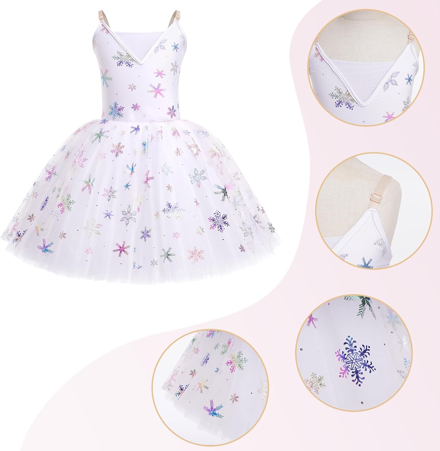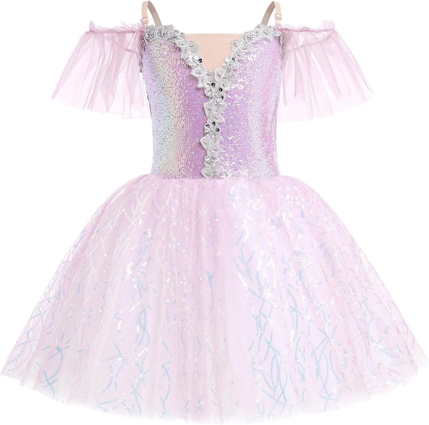 • TODDLER DANCE DRESS: Elegant sparkle, the IBAKOM ballet dress features a gorgeous v neckline, elastic shoulder strap and flower embroidery at front for a memorable studio look. Also the maxi tull tutu would be flowy in your every move.