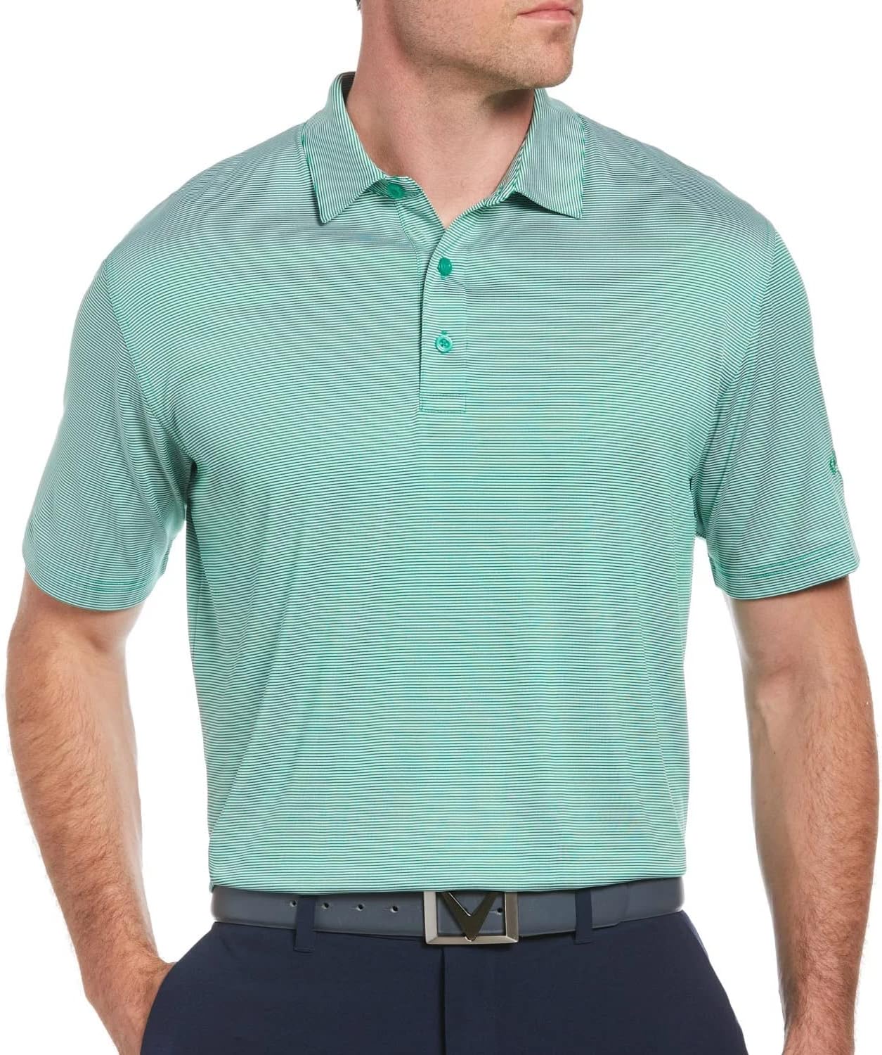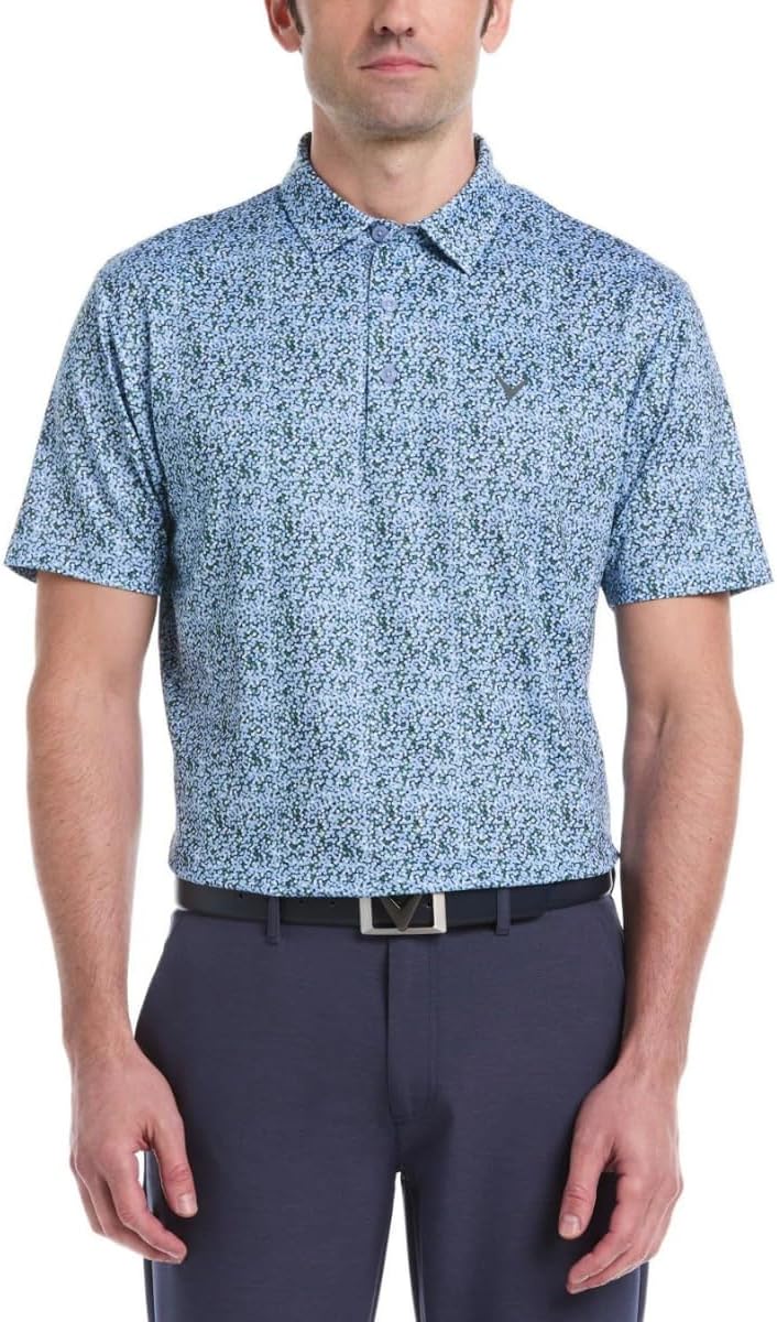 Instantly elevate your game and your on-course style with this versatile Callaway Pro Spin men's golf polo. It’s built for comfort and performance with soft and breathable jersey fabric that contains added stretch for a full range of motion from tee to green. This short sleeve golf shirt is equipped with moisture-wicking Opti-Dri technology to help keep you feeling cool and dry and it has sun protection to safeguard your skin from the sun's harmful UV rays. Fine line stripes bring fashionable flair to this sporty men’s polo shirt and the classic golf fit provides roomy comfort while you play through. Fashionable and functional, this performance golf top is available in a full range of regular and Big & Tall sizes to comfortably accommodate any avid golfer.