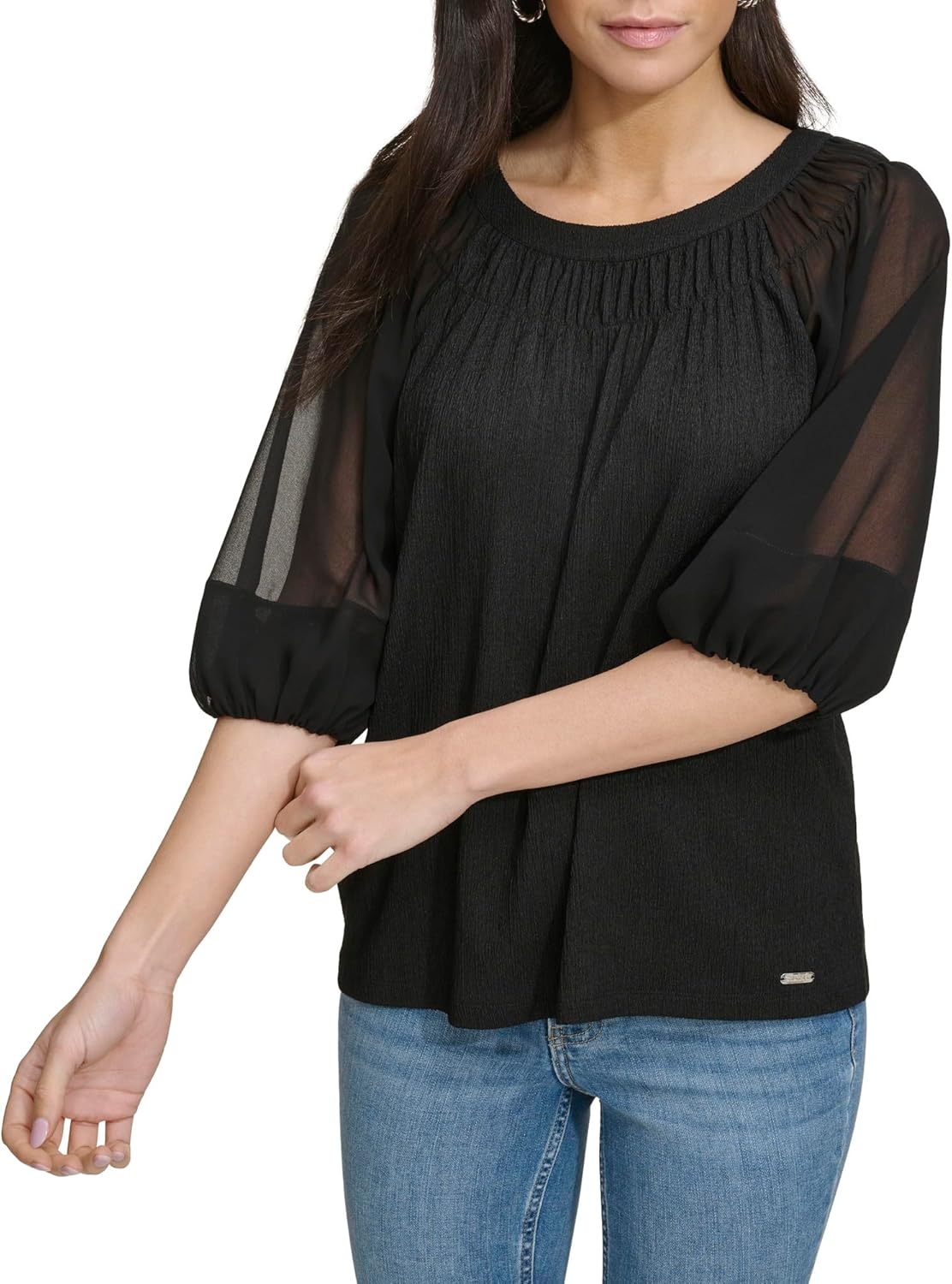This Calvin Klein Women's Sportswear Top is a Short Sleeve Knit