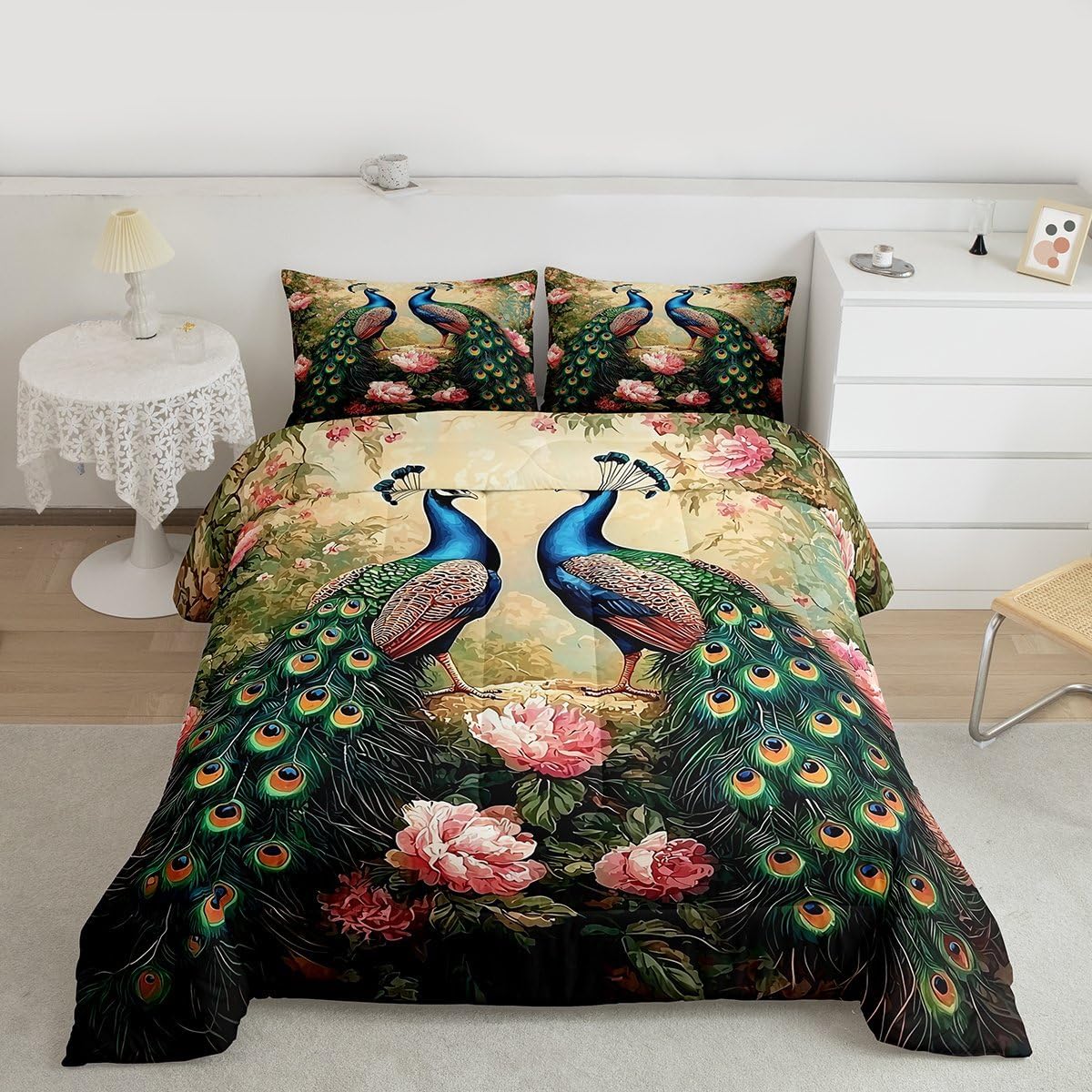 Size Information Toddler size: 1 Comforter 42"W x 58"L, 1 Quilted Pillowcase 30"W x 20"L. Twin size: 1 Comforter 68"W x 90"L, 1 Quilted Pillowcase 30"W x 20"L. Full size: 1 Comforter 79"W x 90"L, 2 Quilted Pillowcases 30"W x 20"L. Queen size: 1 Comforter 90"W x 90"L, 2 Quilted Pillowcases 30"W x 20"L. King size: 1 Comforter 104"W x 90"L, 2 Quilted Pillowcases 36"W x 20"L. Versatility We have many kinds of styles for you to choose. You can easily find a product that suits the style of your room. The item is not only Suitable for your home, bedroom, guest room, living room, or rv, your families, friends, relatives, boyfriend,girlfriend. Modern Design The luxury aesthetic comforter set is made reactive printing and dyeing process. The pattern is clear, the color is bright, which will not fade after repeated washing. Personalized As a manufacturer of digital printed home textiles, we follow current trends and bring you the latest and stylish home textile products. The item will make the room decorated in exquisite taste. We sincerely hope you will love the bed set.