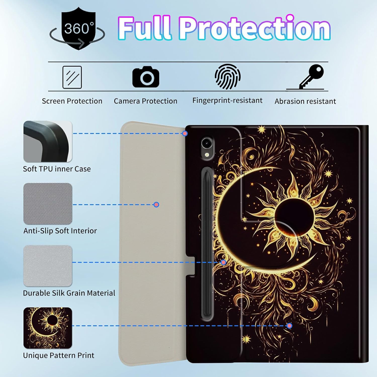• 【Full Protection】 - for Galaxy Tab A9 Plus Case With PU leather cover and interior case (consists of an acrylic hard back & soft silicone sides) offer full protection, protect your tablet from daily bumps scrapes and accidental drops, bumps, scratches, and shock absorption