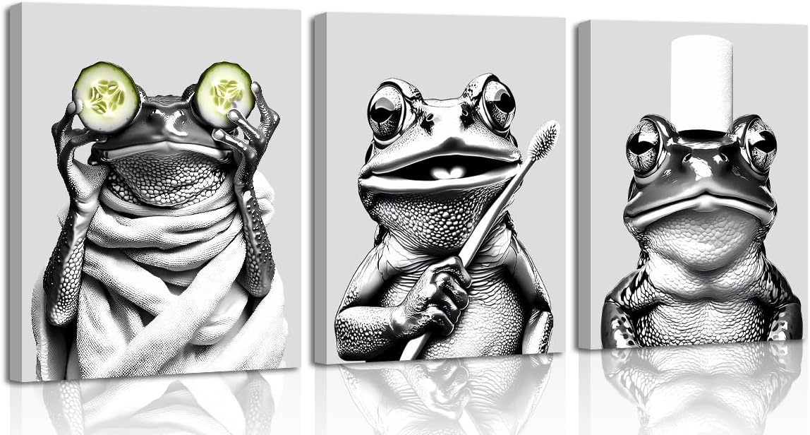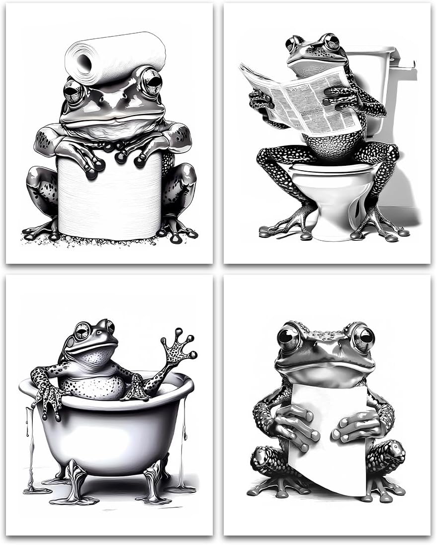 Do you want your room to be unique and artistic? Yes, our wall art prints may be a good choice ✍★This collection of frog pictures wall decor frog wall art is ideal for those who appreciate artistic flair and a touch of whimsy in their home decor. ✍★The framed wall art comes ready to hang, allowing you to instantly refresh your bathroom decor with minimal effort. ✍★Create a cozy and inviting bathroom ambiance with this charming FRAMED WALL ART. ✍★Each of the 4(8"x10" UNFRAMED) pieces in this SET offers a glimpse into the amusing world of frog pictures. ✍★The canvas paintings are perfect for those who love eclectic home accents that add personality and charm.