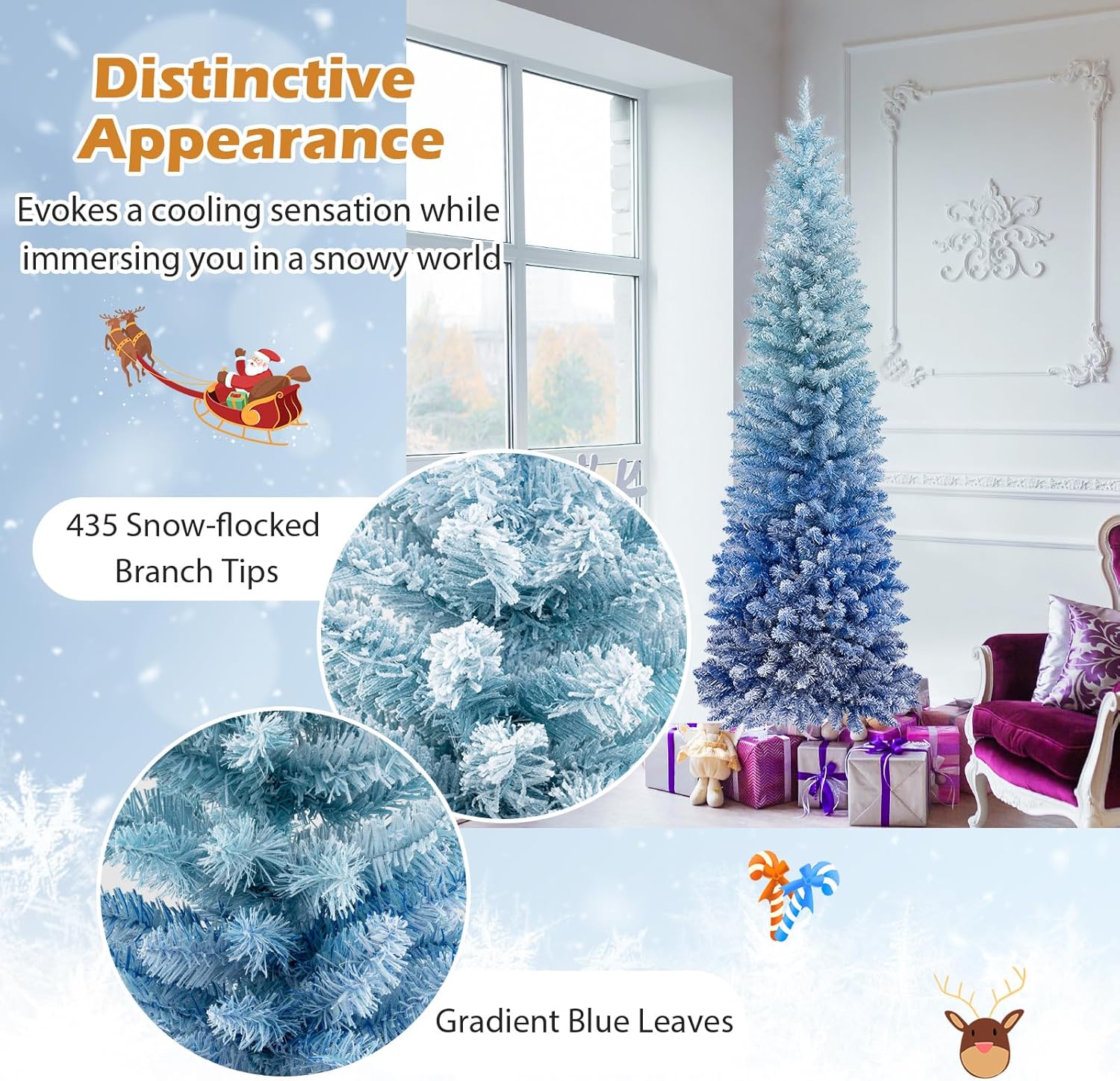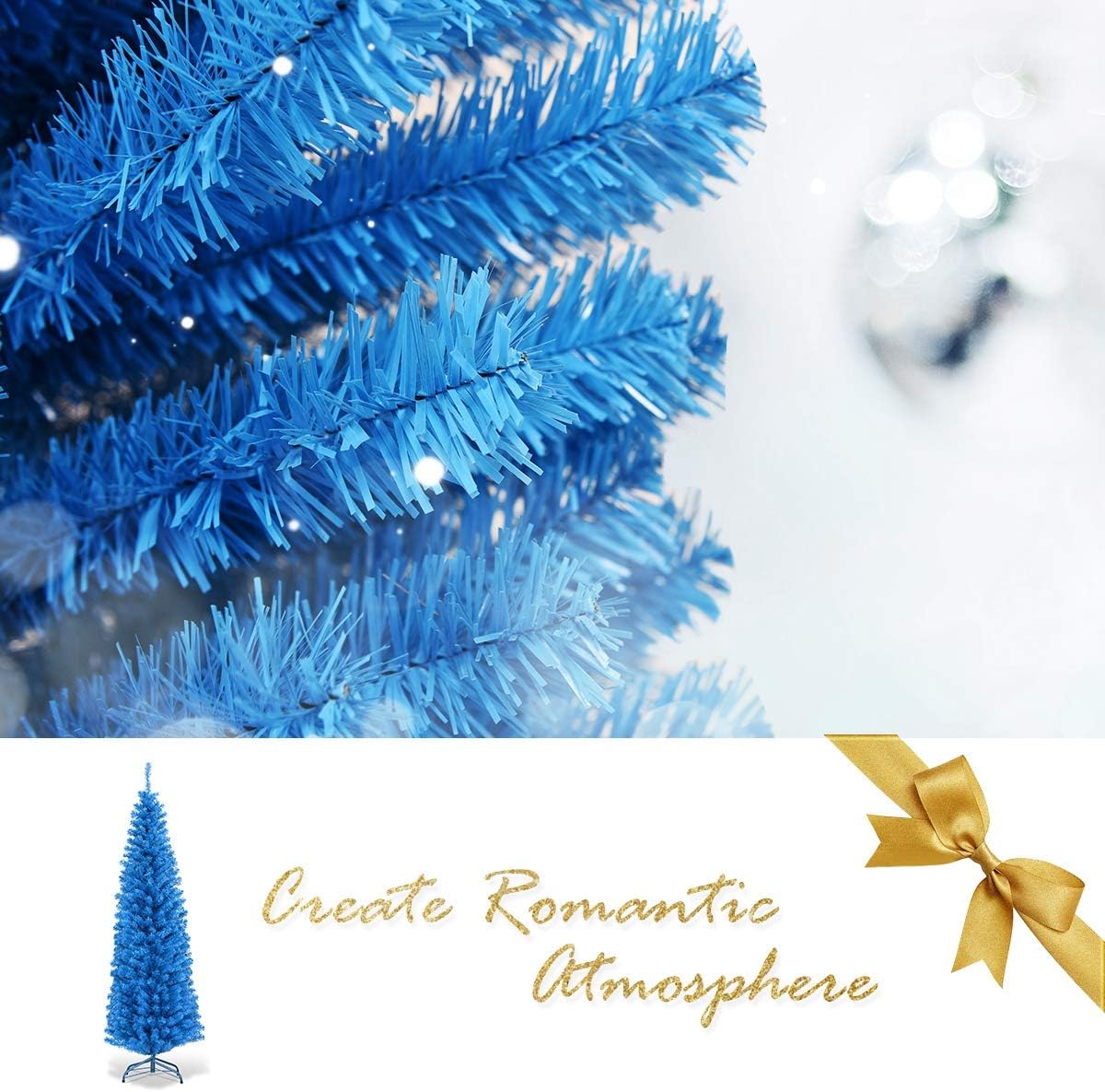 GOFLAME 6 FT Pencil Slim Christmas Tree, Artificial Christmas Tree with Foldable Metal Stand and PVC Material, Perfect Holiday Decoration for Home and Office, Green