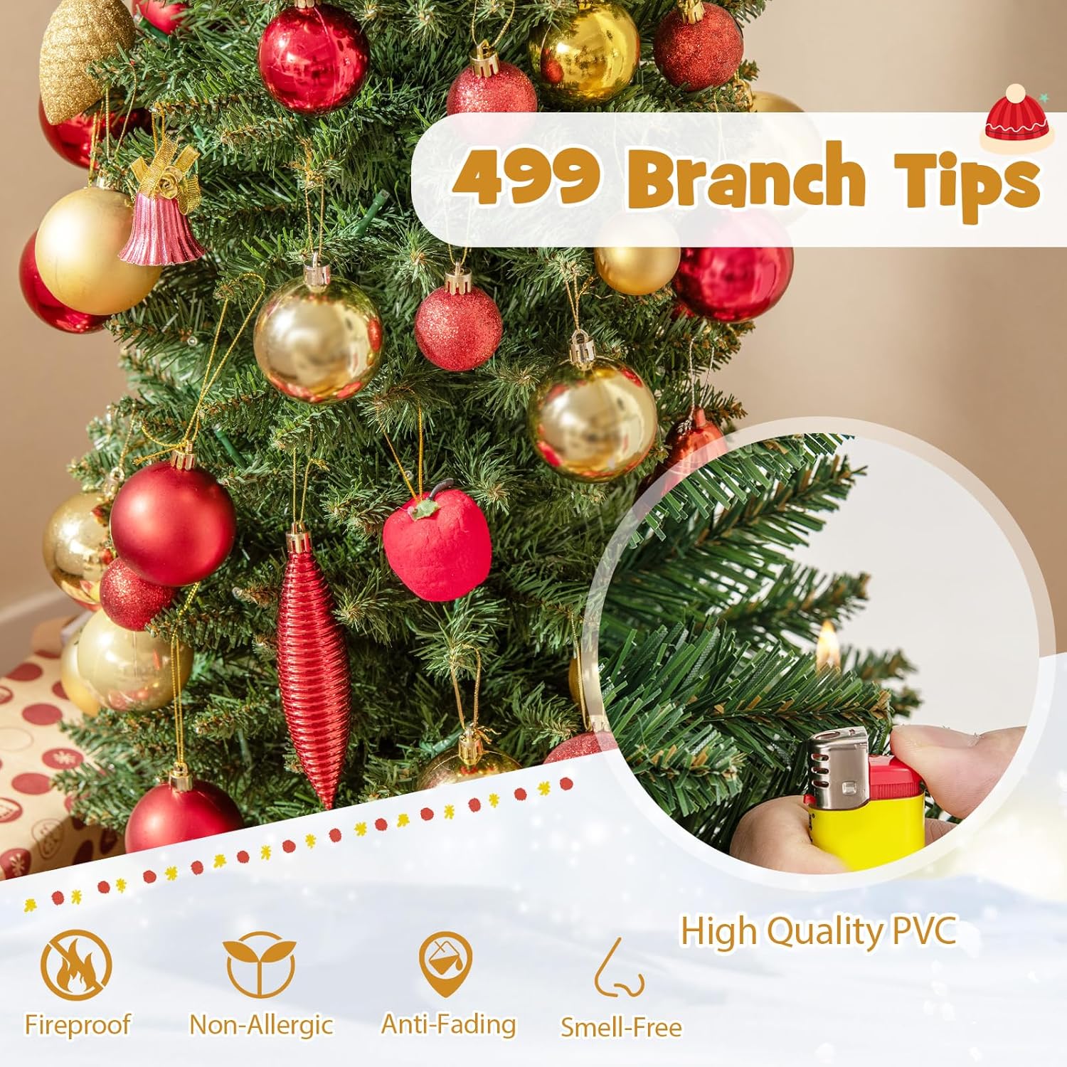 • Space Saving Pencil Design: This slim pencil shape Christmas tree is perfect for compact spaces or limited apartment, bringing a happy and prosperous festive atmosphere.