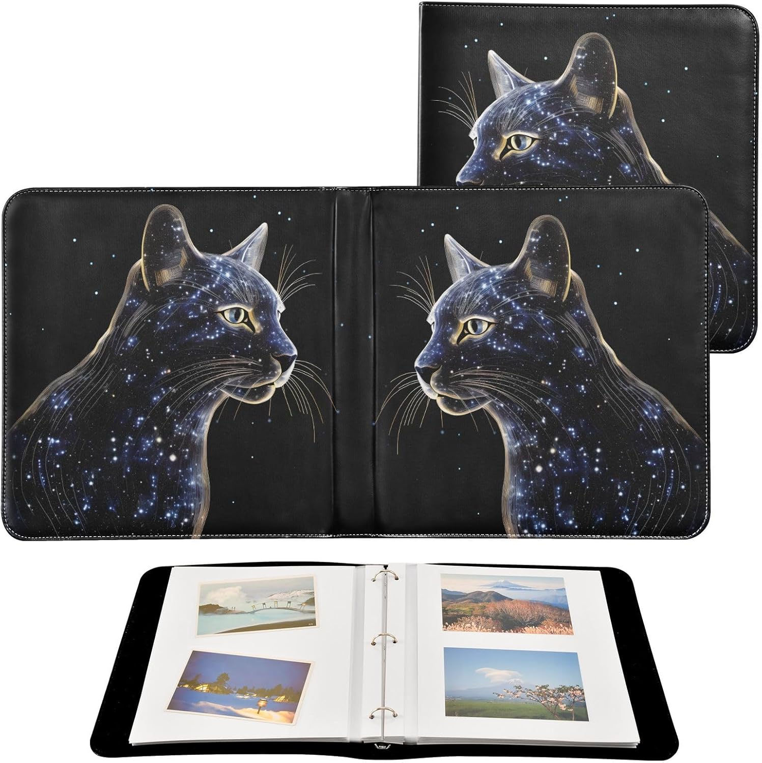 MATERIAL PU leather Waterproof, easy to clean SIZE 11.8 x 11.2 x 1.5 inch DESIGN Elegant single-sided exterior print The innovative binder design allows you to add or remove paper as you wish, flexibly adapting to different recording needs. The pages are fully self-adhesive, which is not only easy to reuse, but also convenient for organization and storage, so that your beautiful memories are well organized. MATURE PRINTING TECHNOLOGY Mature printing technology makes the prints vivid and colorful. Hundreds and thousands of dieffrent cute pattern designs for you.