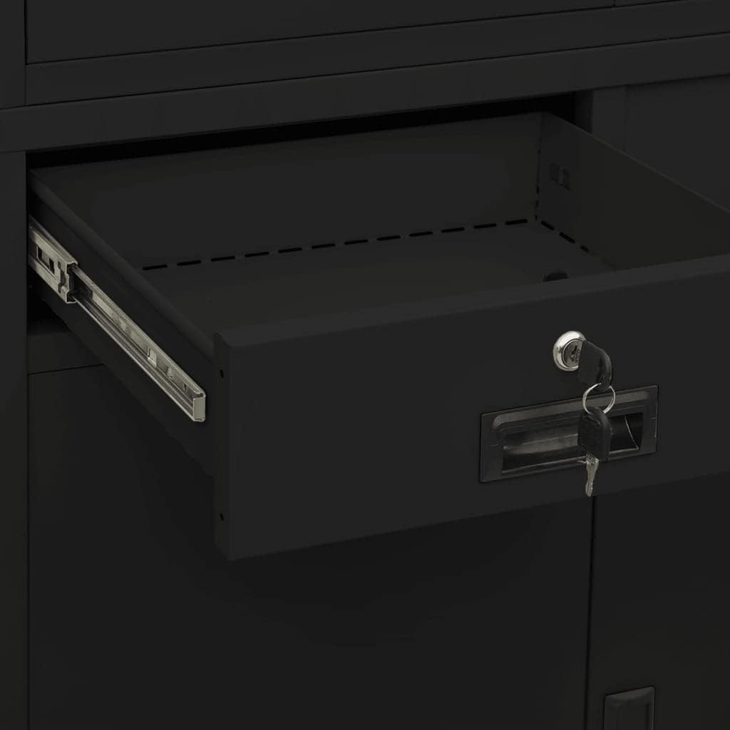This office cabinet, with a typical filing cabinet design, is ideal for file storage.This office cabinet is made of steel, making it durable as well as easy to clean. With 3 adjustable shelves, this file cabinet allows you to neatly sort your files into different categories and keep files safe. Top 2 doors have tempered glass window, which helps you find the files you want easily. Drawers with 3 sections ballbearing runners ensure smooth opening and closing, even under increased load. This cabinet will suit any office decor thanks to its iconic design.Color: Light grayMaterial: Steel and tempered glassDimensions: 35.4" x 15.7" x 70.9" (W x D x H)With 3 adjustable shelvesWith locks4 doors (Top 2 doors have tempered glass window)2 drawers with 3 sections ballbearing runnersLoading capacity per shelf: 66.1 lbLoading capacity per drawer: 55.1 lbTotal loading capacity: 198.4 lbAssembly required: Yes