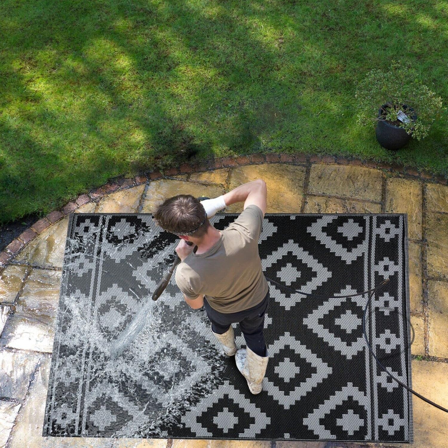 This low-maintenance outdoor mat is made of 100% recycled polypropylene and features heat-treated edge to prevent fraying. It is perfect for the beach, camper, or front porch. The material is breathable and won't damage your deck or lawn. Any outdoor area, including a patio, deck garden, beach, picnic, RV camping area, garage, or children's room, can be made more enjoyable with the help of these adaptable and practical outdoor rugs and RV patio mats.