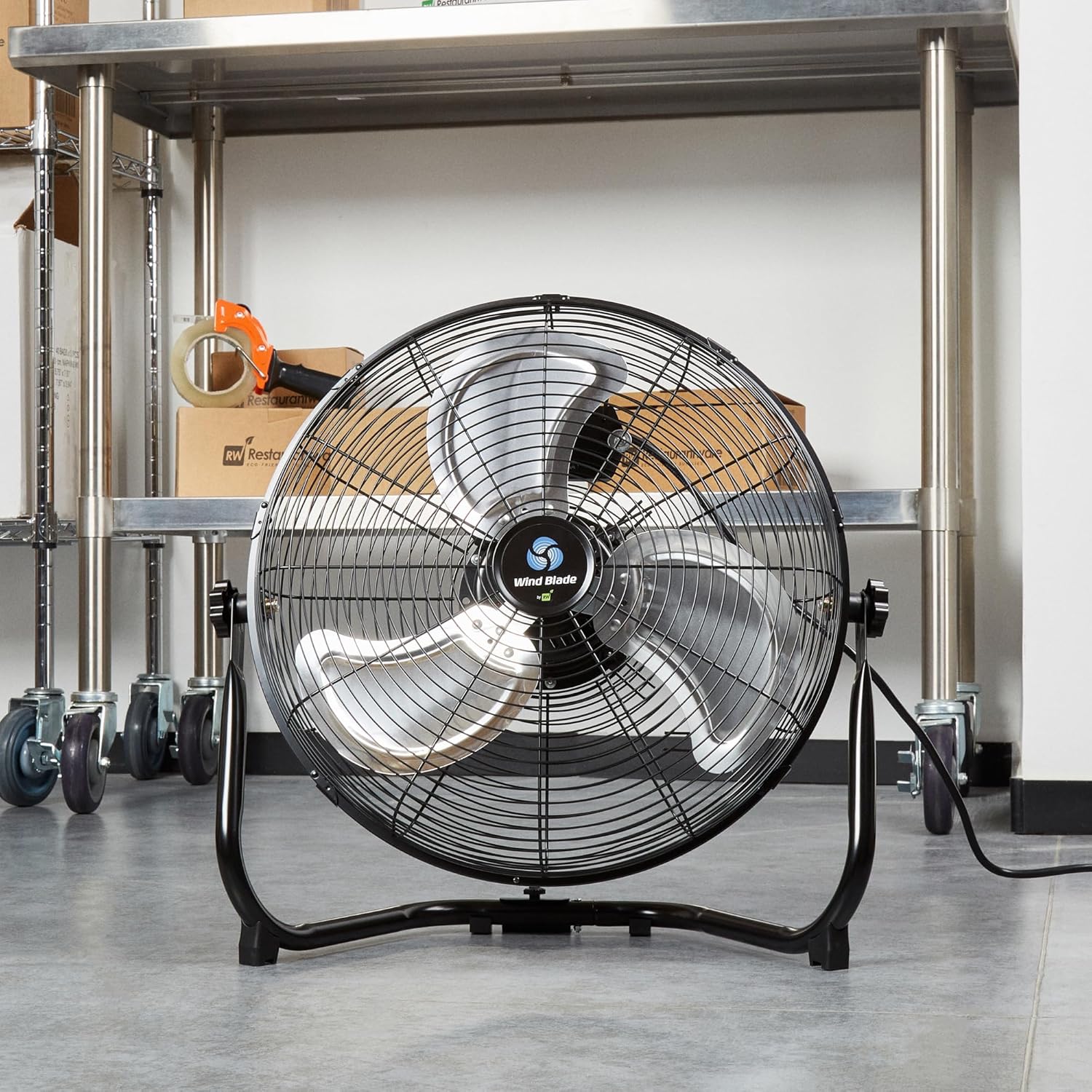 Keep your space cool and comfortable with our Wind Blade 3-Speed Industrial Floor Fan. This commercial electric fan is designed with a tilting head, allowing for targeted airflow in any area of your establishment. The powerful 1/6 hp motor of this electric fan features 4,750 CFM, ensuring efficient performance and making it ideal for large spaces like restaurant kitchens or dining areas. Offering three-speed settings, this floor fan can be customized to provide the perfect breeze for your needs. This high-velocity indoor fan is made with an all-metal body, ensuring durability and longevity. With its dual ball bearing motor, this high-velocity fan ensures smooth, uninterrupted operation. Capable of being mounted to a wall, this high-speed fan offers versatile placement options for your convenience. This fan measures 20 inches in diameter, making it a compact and space-saving cooling solution for your commercial space. Sold in a 1 count box.