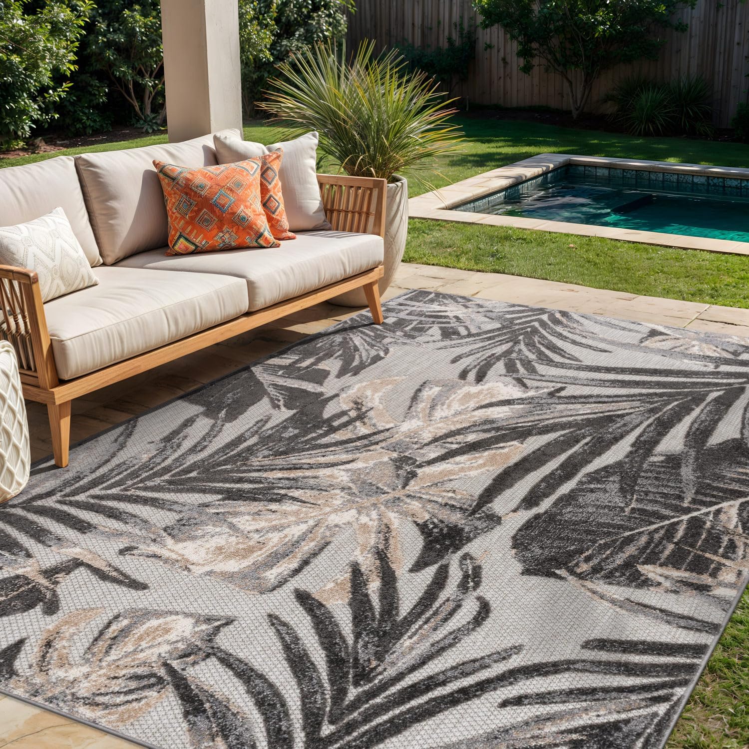 Experience the comfort, durability and versatility of this rug inside or outside of your home. It is Machine made in Turkey by using 100% polypropylene. Dual usage of this rug enables it to be easily cleaned. The modern abstract pattern add visual glare to any space. Care Instructions: Indoor/Outdoor rugs can be cleaned with a bit more vigor than regular rugs. Rinsing a rug with a garden hose is an excellent way to blast away excessive grime.Dry indoor-outdoor rugs over a railing in the sunlight on both sides instead of placing it on a wooden deck or stone patio, this can encourage the growth of moss or mold on a damp rug.