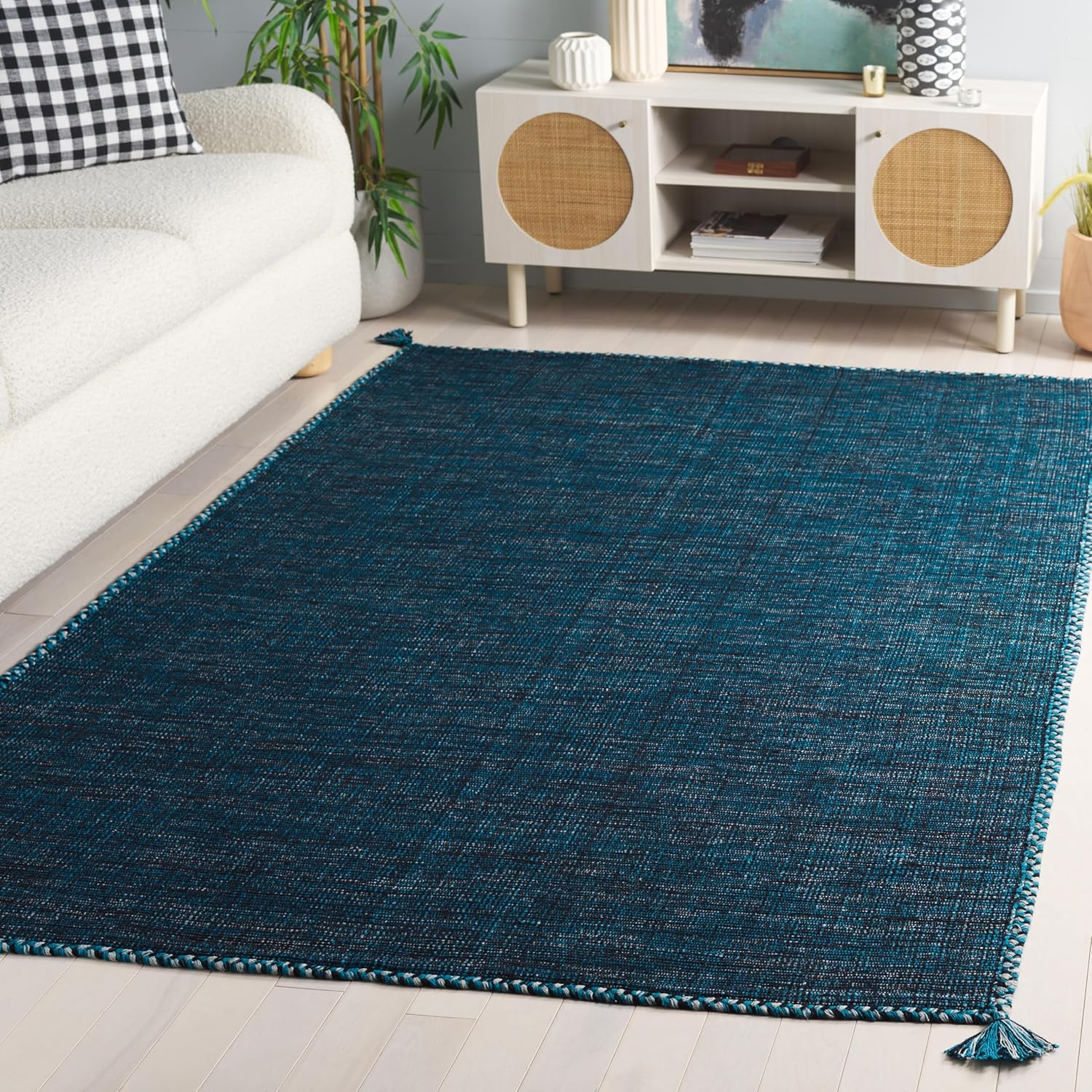 | Model Name | SAFAVIEH Montauk Collection MTK150T Handmade Flatweave Cotton Corner Tassel Entryway Living Room Foyer Bedroom Accent Area Rug 4' x 6' Blue/Black |