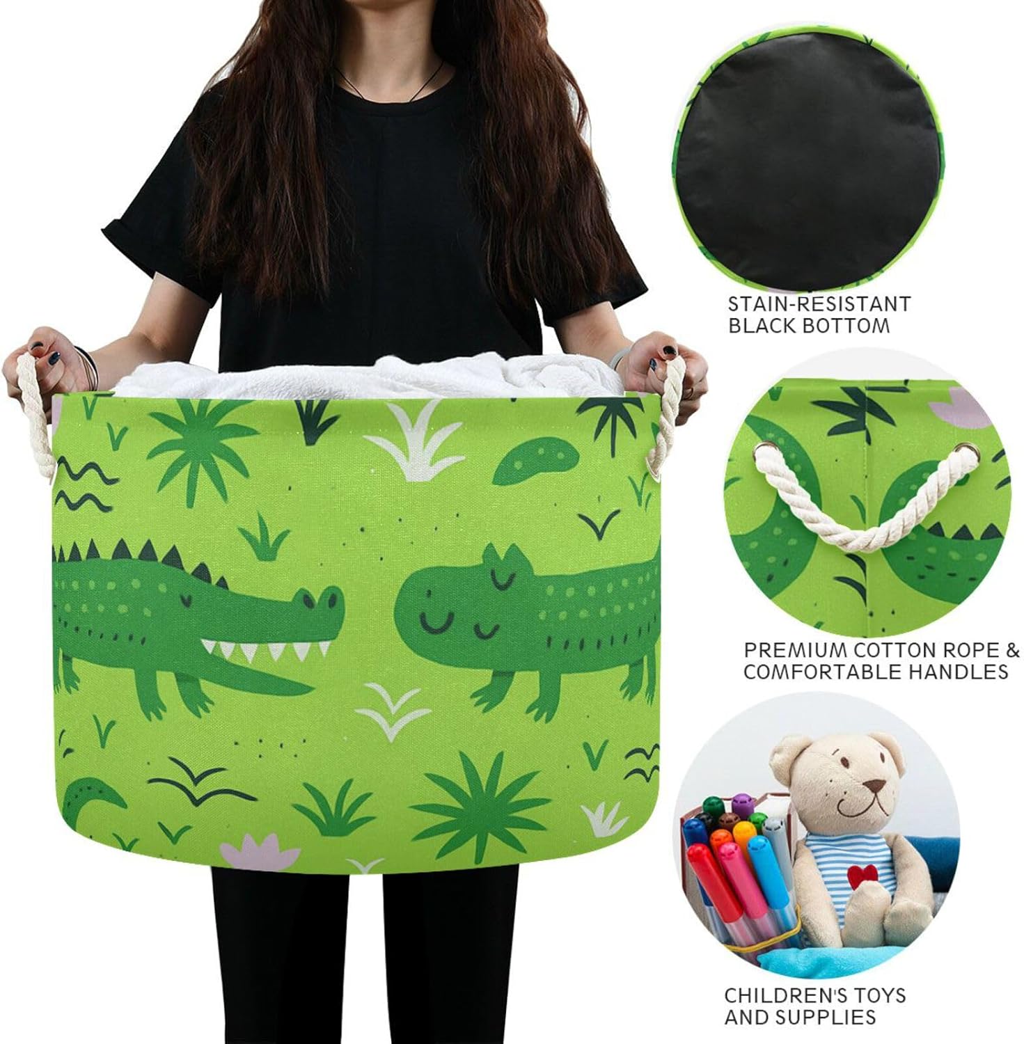Product Specifications:High capacity:Size: 20" (D) x 14" (H)Premium Material:Material: Canvas, Cotton, PEWhy choose us?"Linqin" is a professional customized storage basket designer and manufacturer. We produce versatile super large size baskets with vibrant color and cute elegant patterns. It is a perfect decoration to nursery, kid's room, playroom, bedroom, living room, laundry room and your unique home.Our jumbo decorative cotton rope storage baskets are big enough to store bulky items like clothes, blankets, pillows, baby products, kid toys, dog & cats toys, and more while offering plenty of space to organize all your small essentials to help you keep your home neat and tidy! The outer layer of the home storage basket is made of sturdy canvas, the inner layer is made of waterproof coating fabric. The lightweight fabric allows you to take your basket go with ease. Even if it is not in use, it can be folded and put in the drawer or on a shelf as a decoration. Store it effortlessly, taking little space!Enjoy an organized, clutter-free home with our simple, yet stylish cotton rope baskets. Order yours now and say good-bye to clutter and mess today!Warm Tips:This storage basket is not machine washable, just wipe it with a wet sponge or cloth. The laundry basket comes with compression packaging, which may cause wrinkles during long-distance transportation. This is normal and it will recover after a period of time. It can also be removed with a hair dryer and steam iron.
