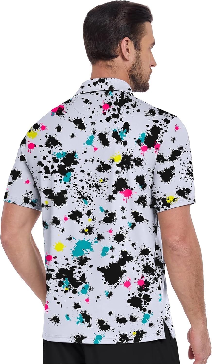 MULTI-MATCHED STYLE: You can match this mens golf polo short sleeve with shorts, dress pants, casual pants, or wear under coat or blazer for a casual or formal look. This print golf shirts will refresh your summer look